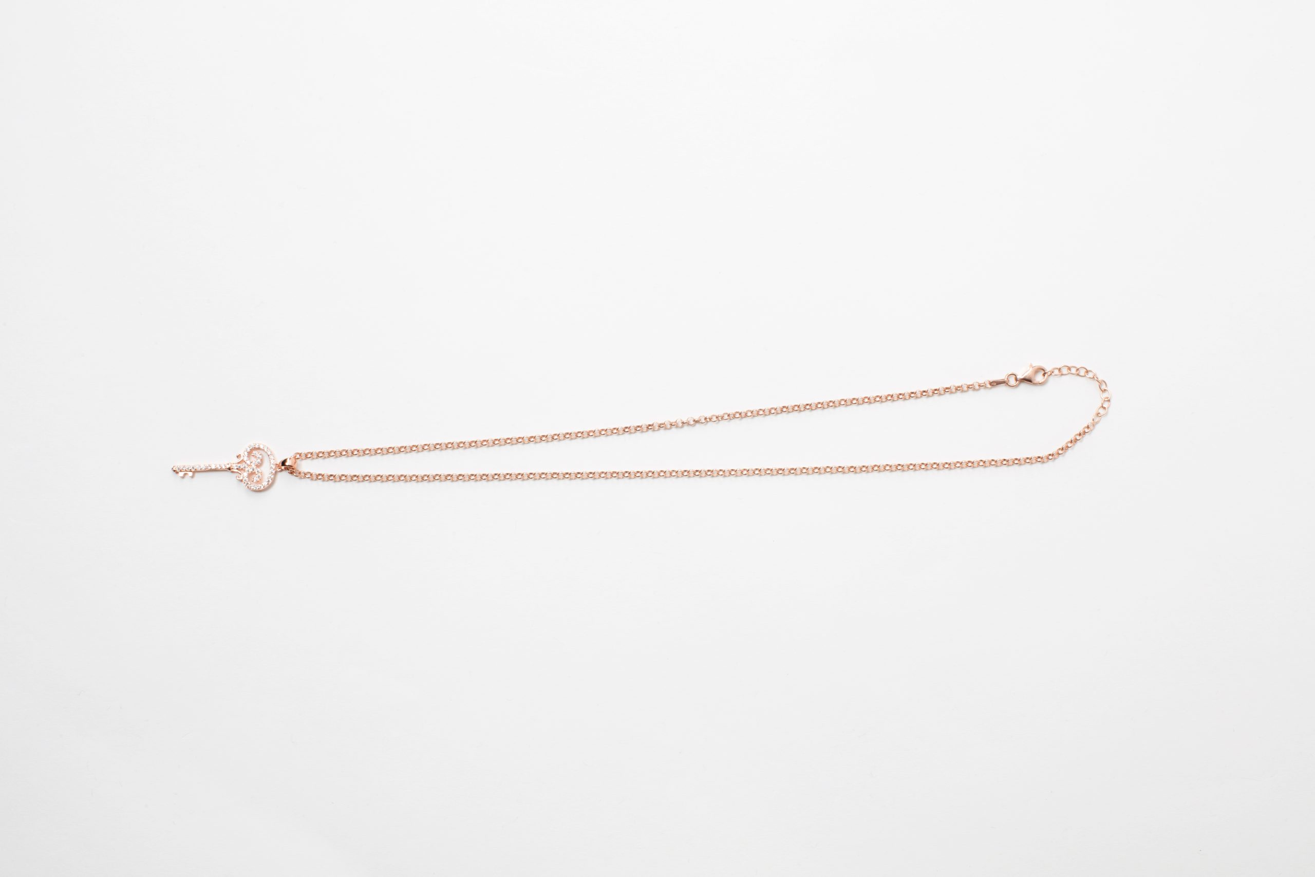 Κολιέ αλυσίδα με στοιχείο κλειδί σε ροζ επιχρυσωμένο ασήμι 925 με λευκά ζιργκόν