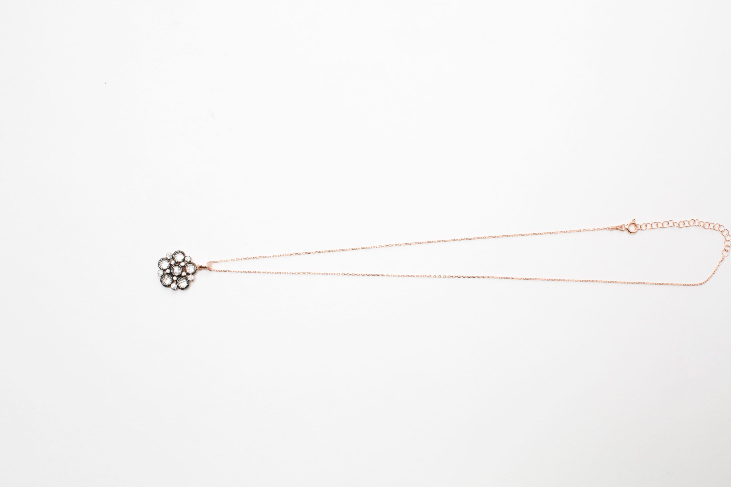 Κολιέ με αλυσίδα και λουλούδι διπλής όψης σε ροζ επιχρυσωμένο ασήμι 925 με λευκά ζιργκόν