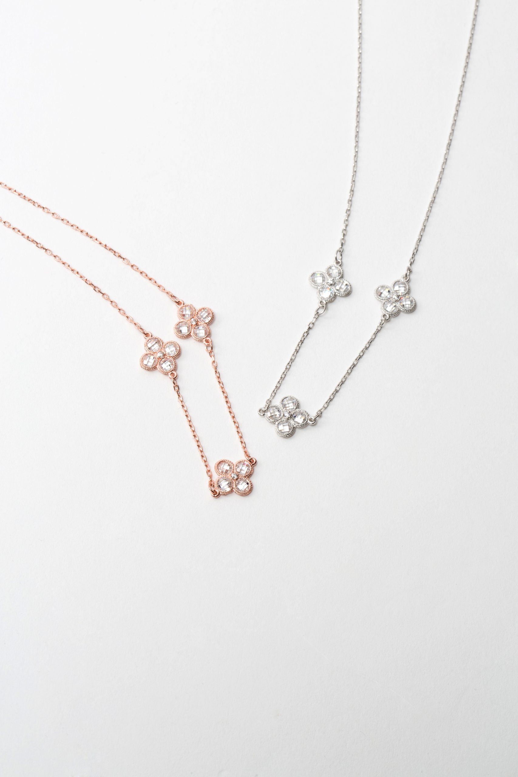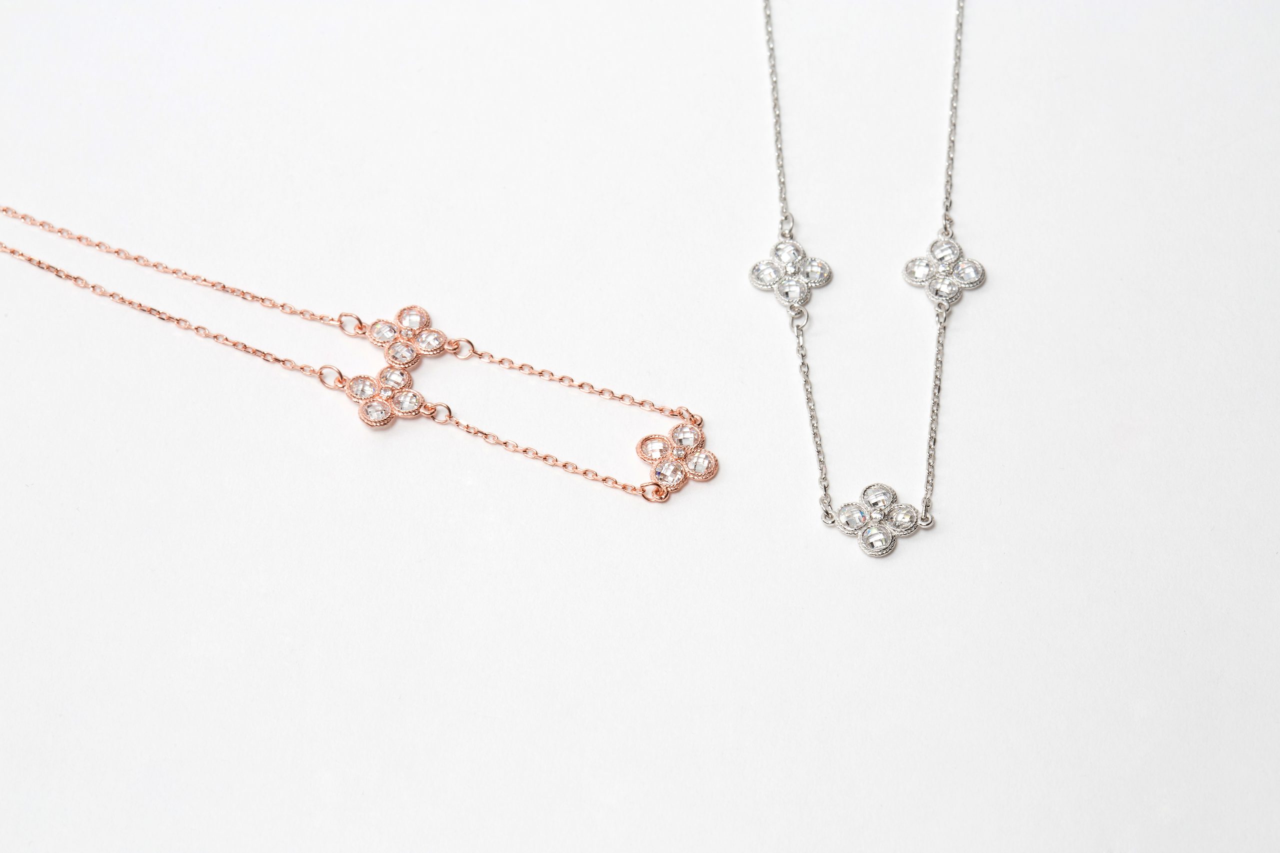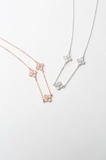 Κολιέ με λουλούδια σε αλυσίδα σε ροζ επιχρυσωμένο ασήμι 925 με λευκά ζιργκόν