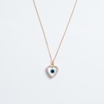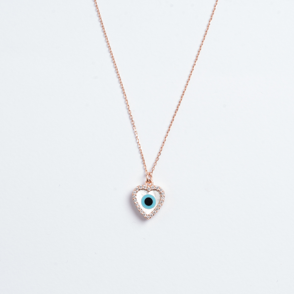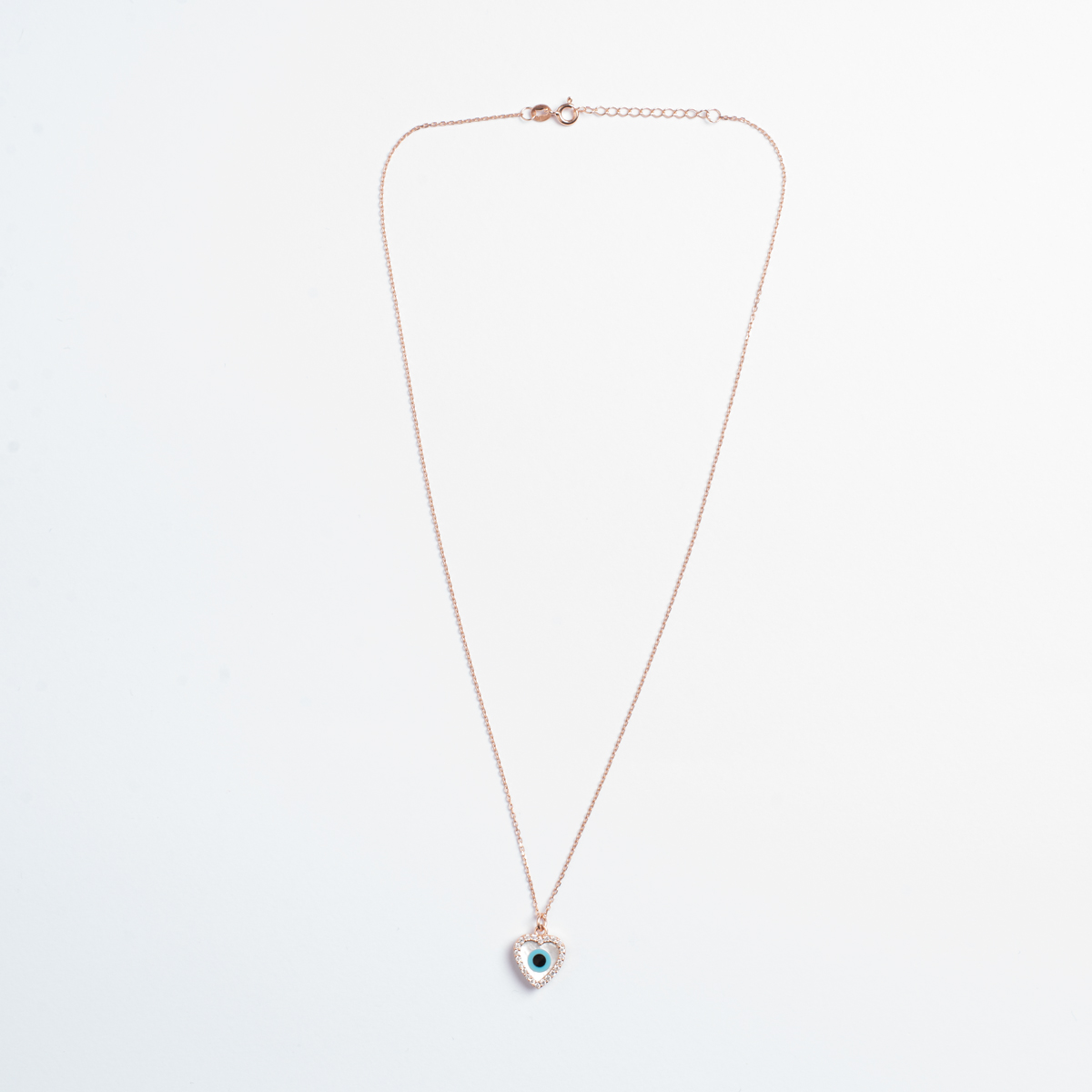 Κολιέ ματάκι σε αλυσίδα σε ροζ επιχρυσωμένο ασήμι 925 με λευκά ζιργκόν