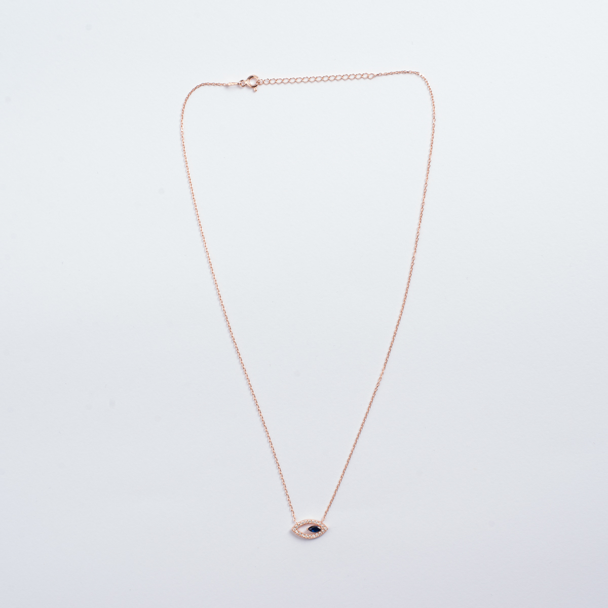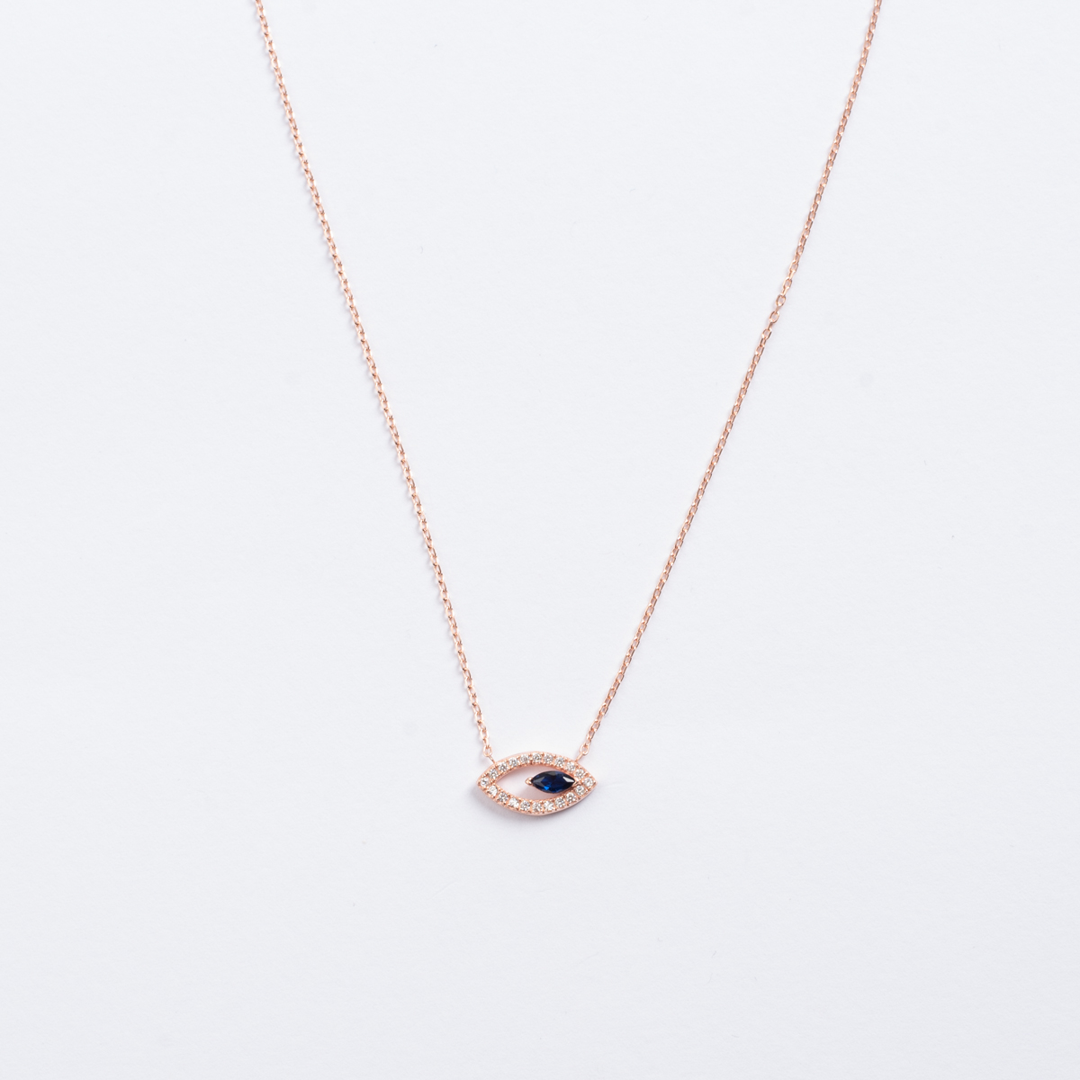 Κολιέ με μάτι σε αλυσίδα σε ροζ επιχρυσωμένο ασήμι 925 με λευκά και μπλε ζιργκόν