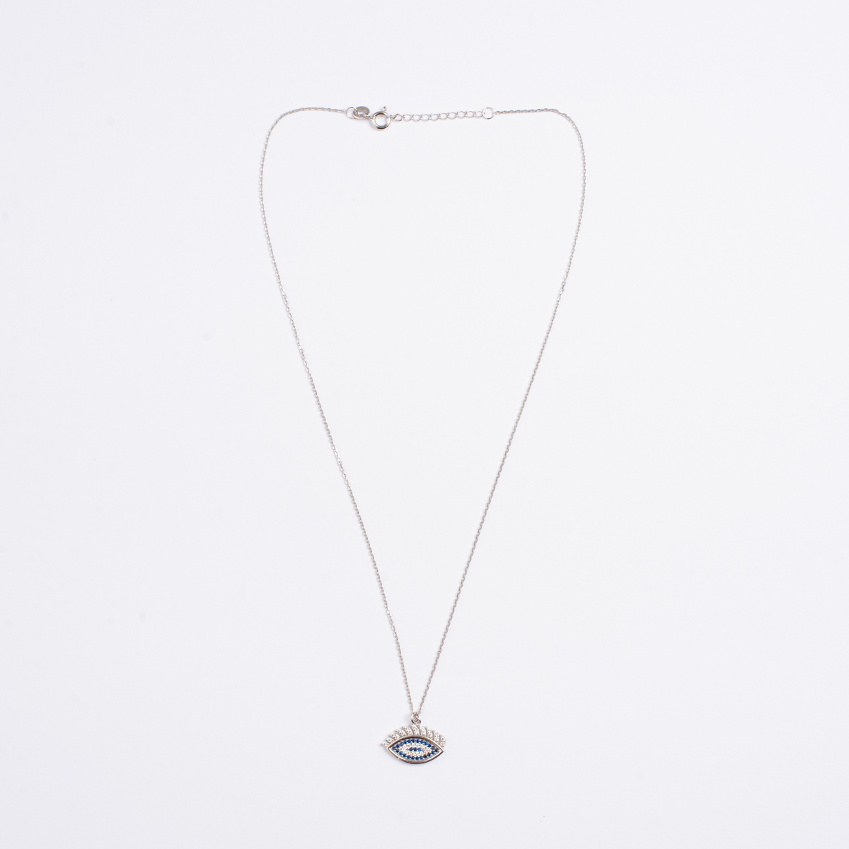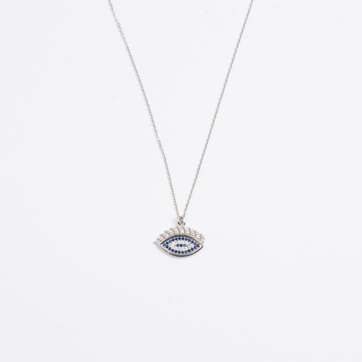 Κολιέ με ματάκι και αλυσίδα σε λευκό ασήμι 925 με λευκά και μπλε ζιργκόν