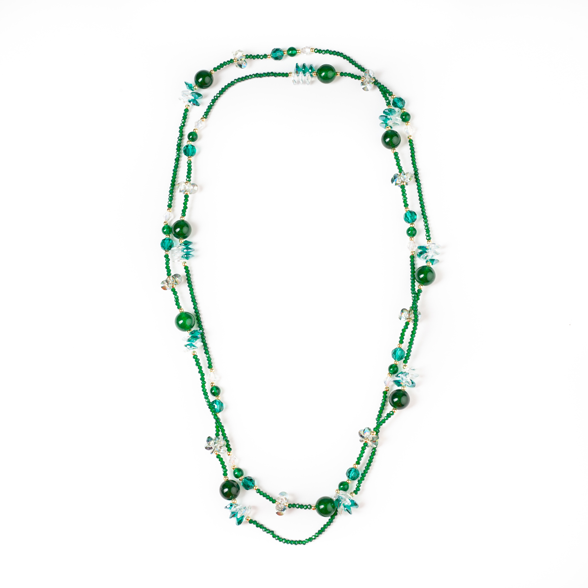 Κολιέ μακρύ σε πράσινο χρώμα σε συνδυασμό από ημιπολύτιμες πέτρες