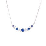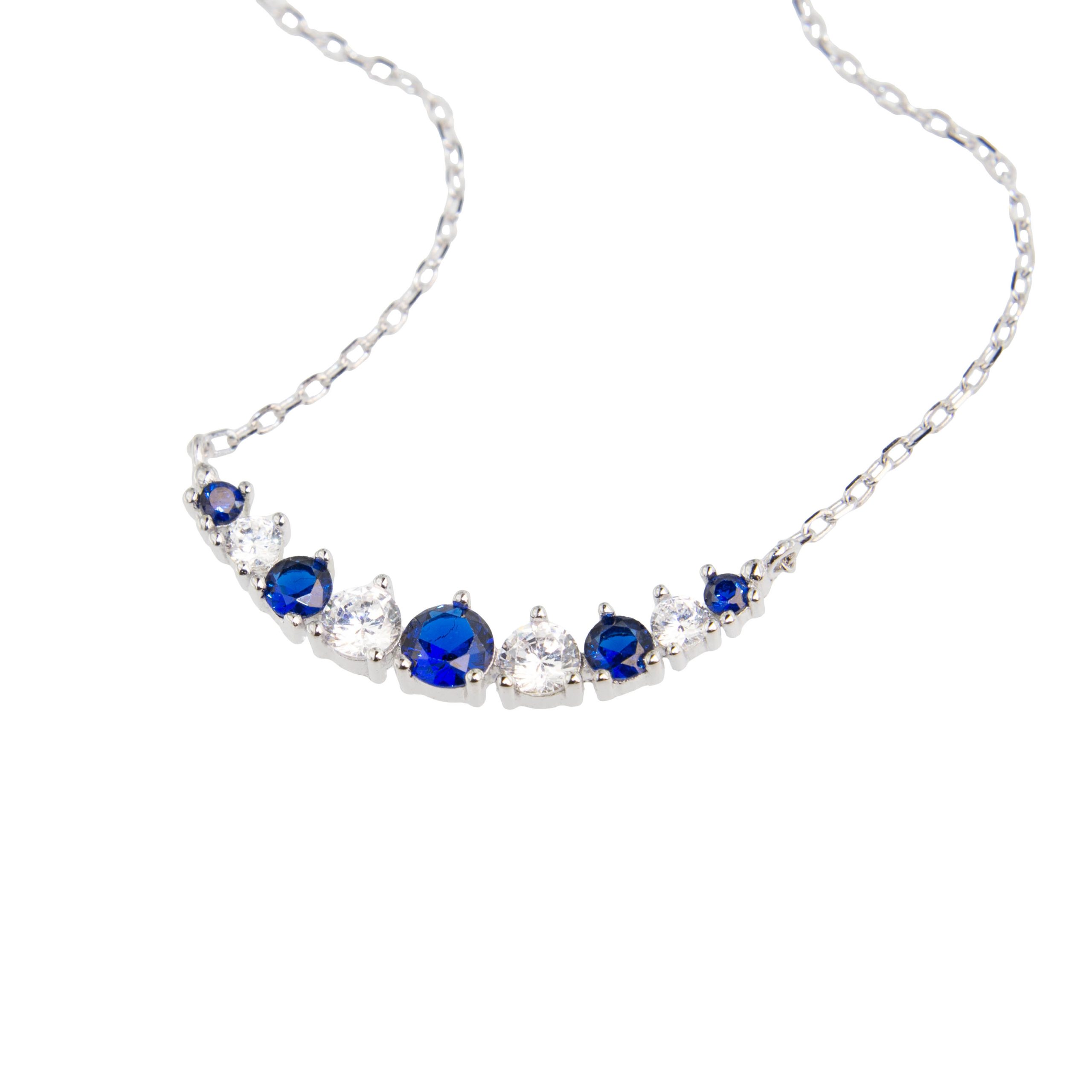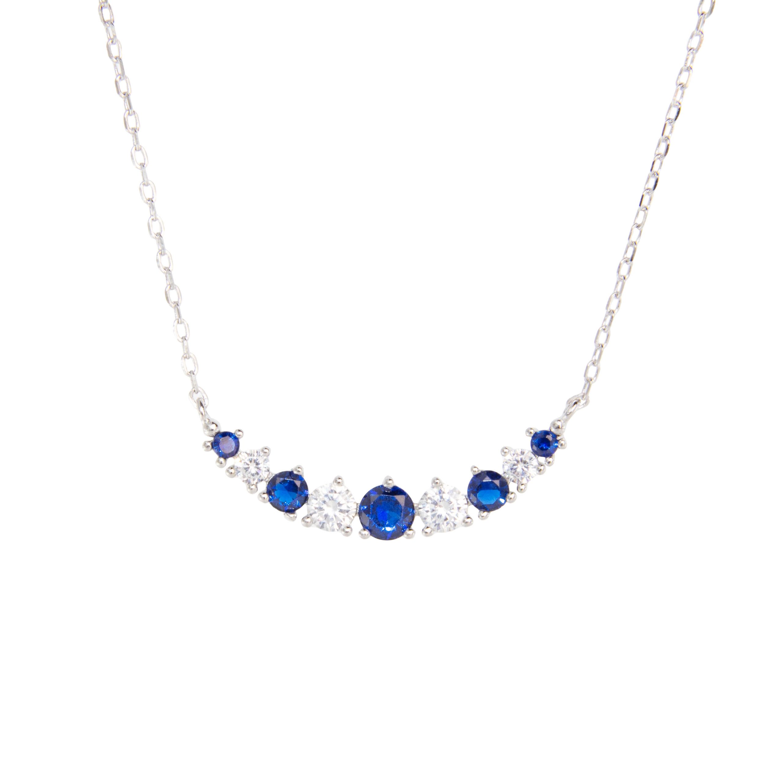Κολιέ μικρή βέργα σε λευκό ασήμι 925 με μπλε και λευκά ζιργκόν