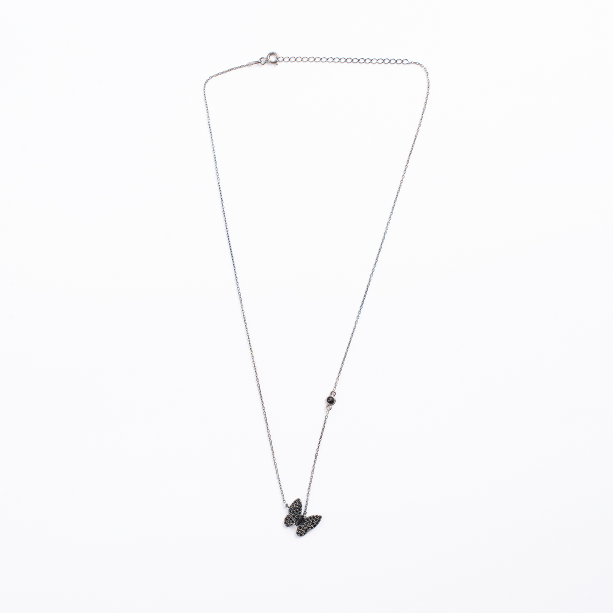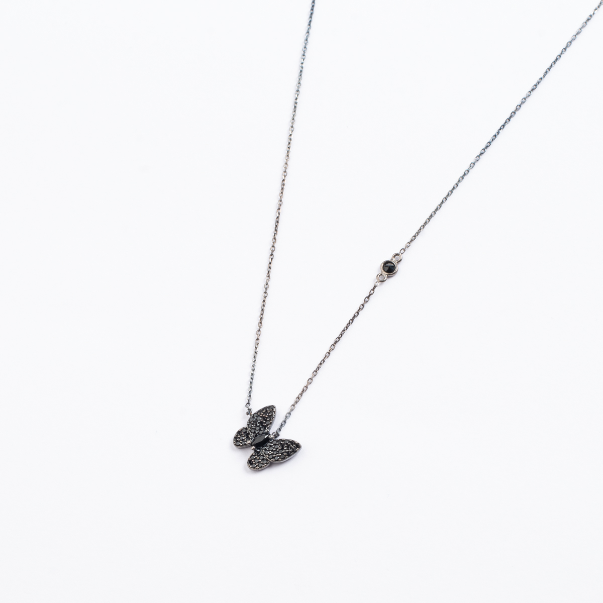 Κολιέ με πεταλούδα σε μαύρο επιροδιωμένο ασήμι 925 με μαύρα ζιργκόν