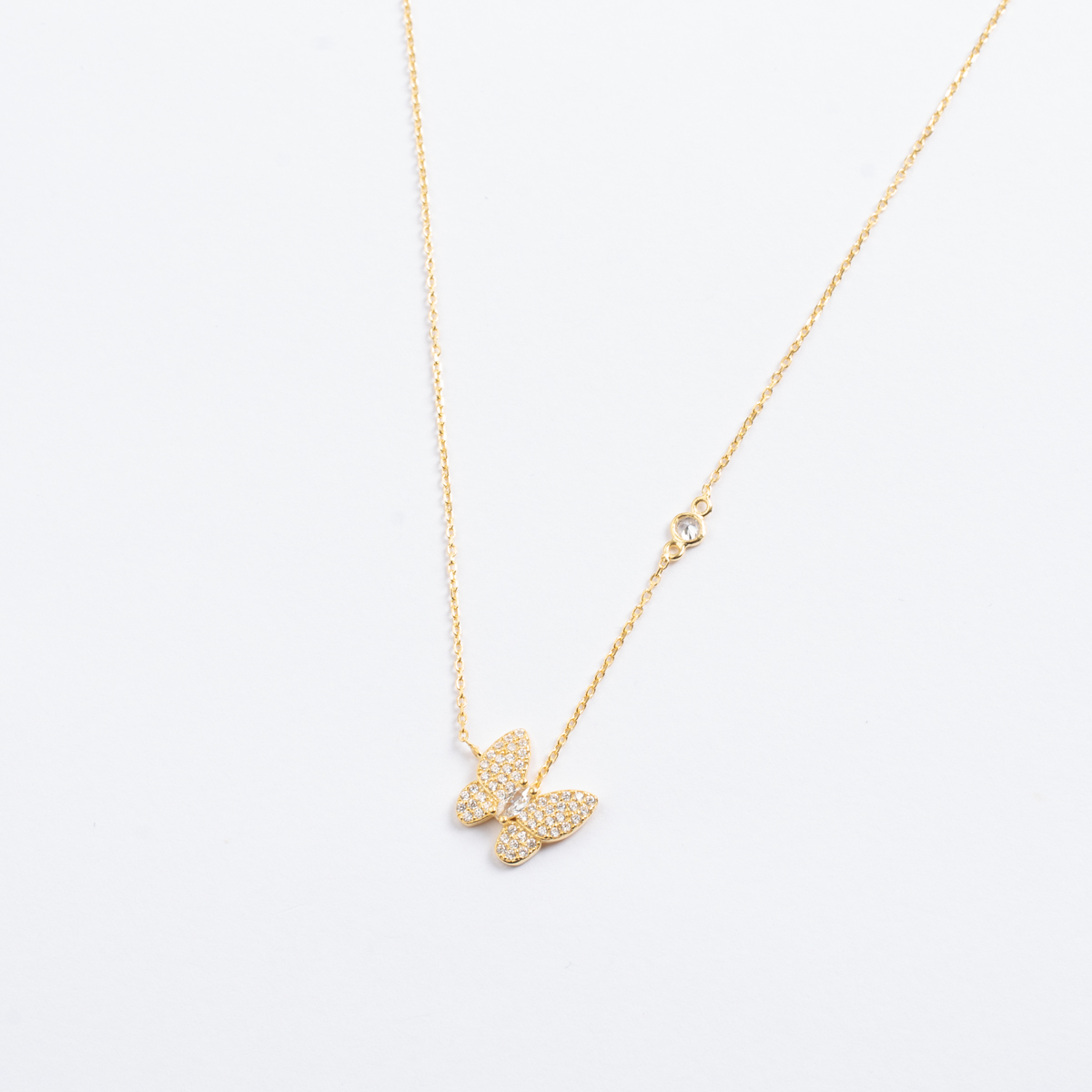 Κολιέ με πεταλούδα σε κίτρινο επιχρυσωμένο ασήμι 925 με λευκά ζιργκόν