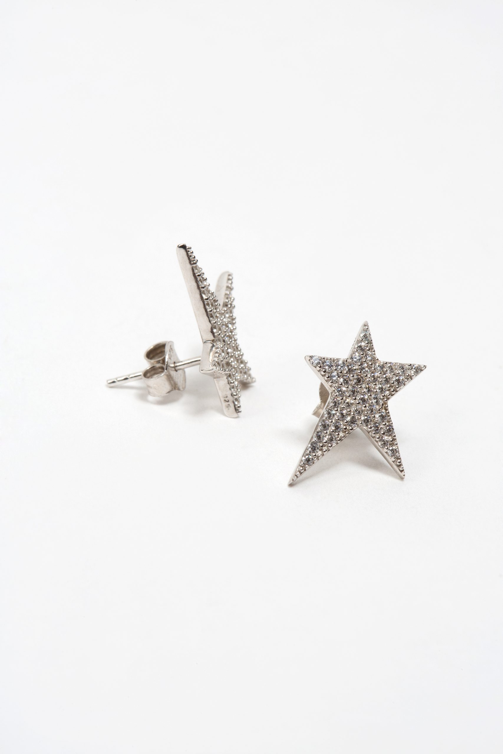 Σκουλαρίκια αστέρια πάνω στο αυτί σε λευκό ασήμι 925 με λευκά ζιργκόν