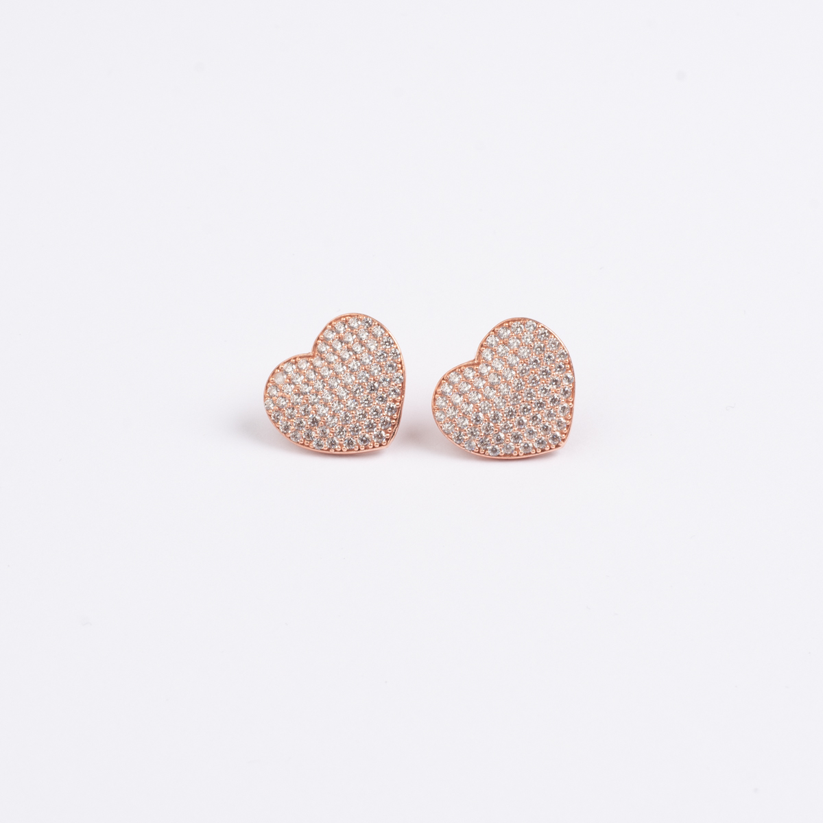 Σκουλαρίκια καρδιές πάνω στο αυτί σε ροζ επιχρυσωμένο ασήμι 925 με λευκά ζιργκόν
