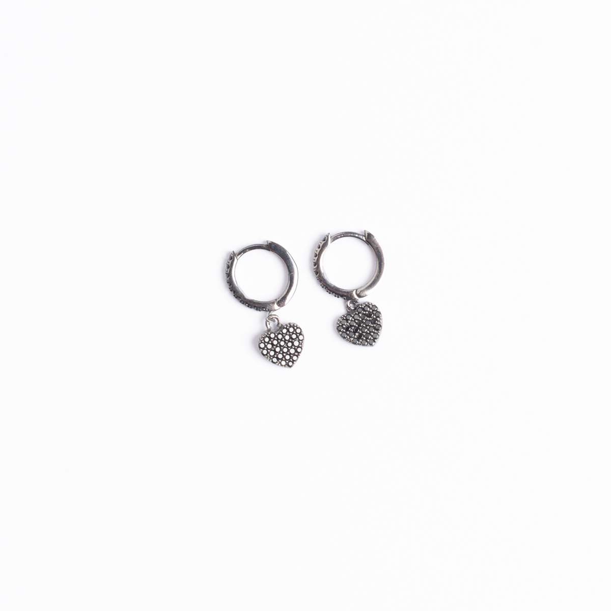 Σκουλαρίκια κρικάκια με καρδιές που κρέμονται σε μαύρο επιροδιωμένο ασήμι 925 με μαύρα ζιργκόν