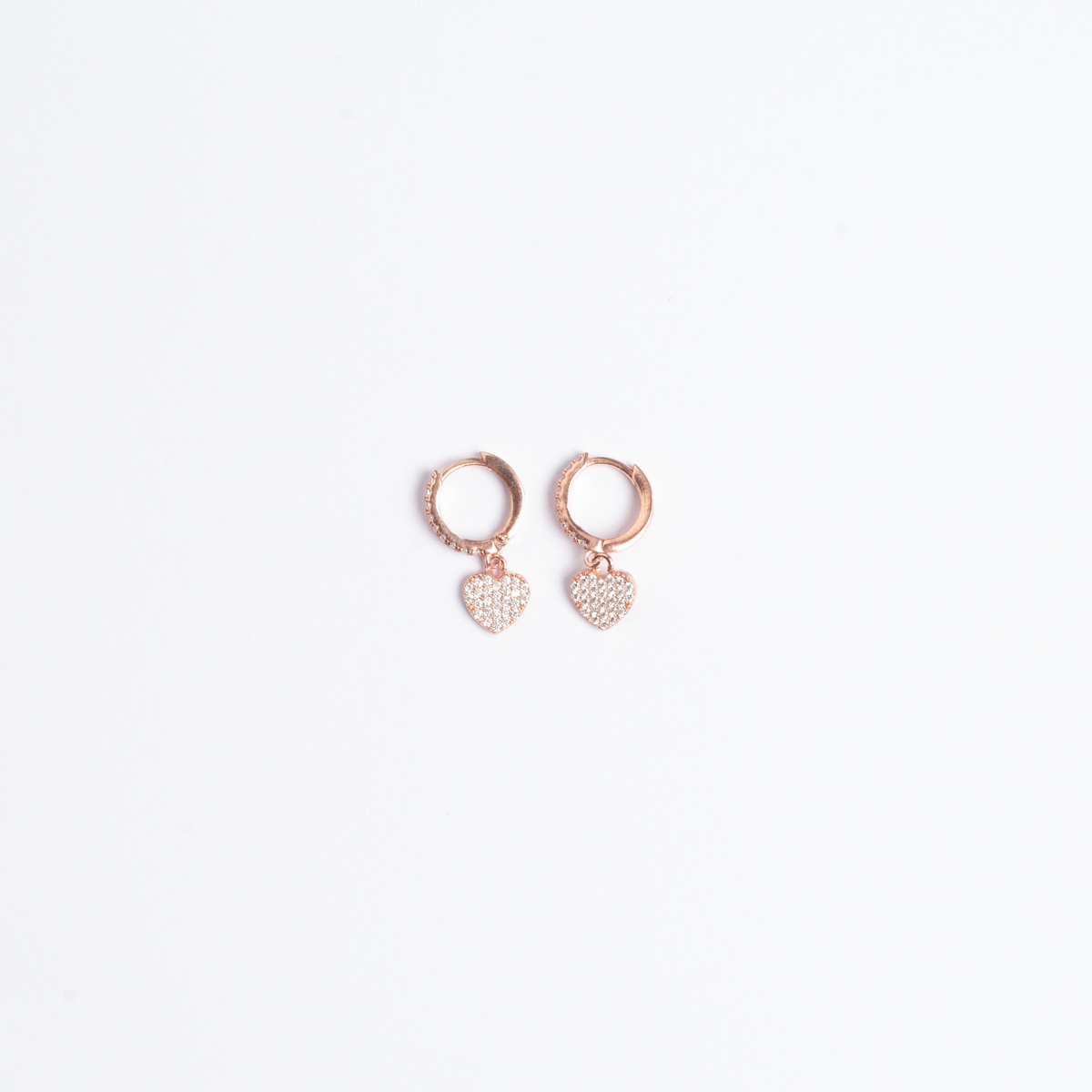 Σκουλαρίκια κρικάκια με καρδιές που κρέμονται σε ροζ επιχρυσωμένο ασήμι 925 με λευκά ζιργκόν