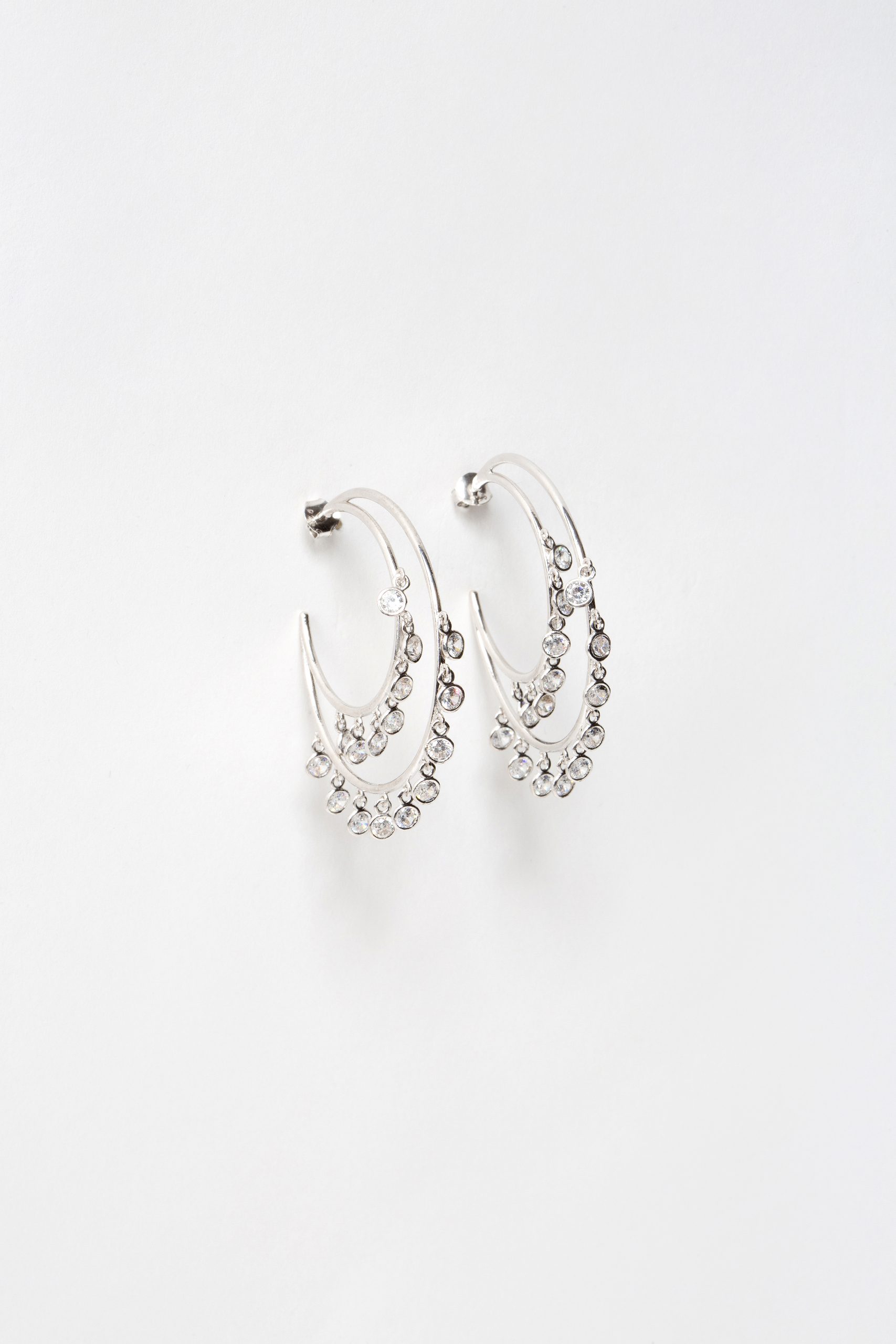 Σκουλαρίκια κρίκοι διπλοί σε λευκό ασήμι 925 με λευκά ζιργκόν που κρέμονται