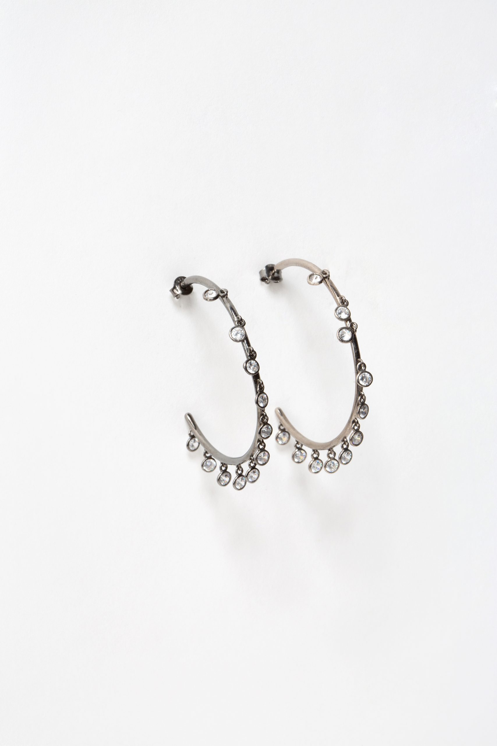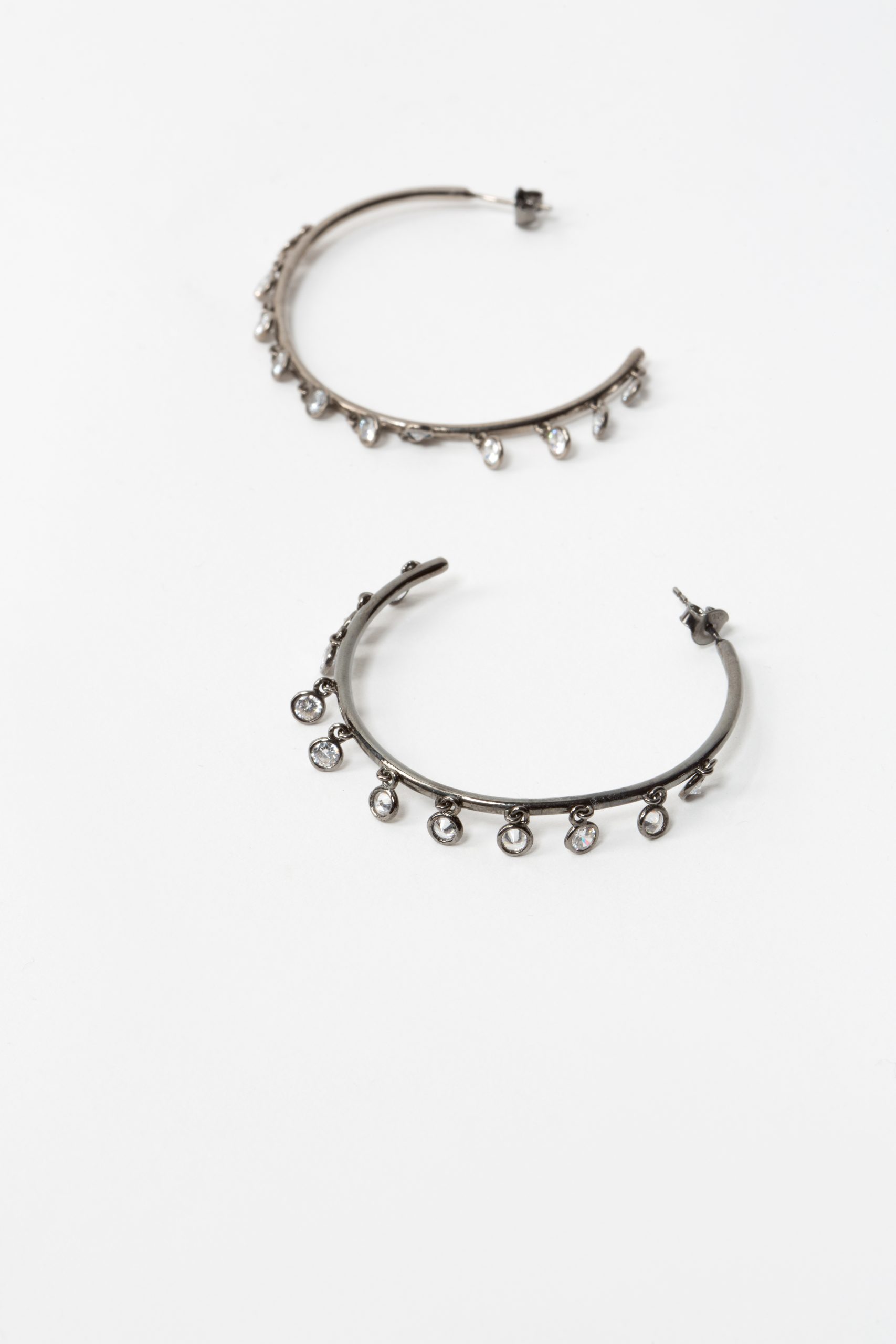 Σκουλαρίκια κρίκοι σε μαύρο επιροδιωμένο ασήμι 925 με λευκά ζιρκόν που κρέμονται
