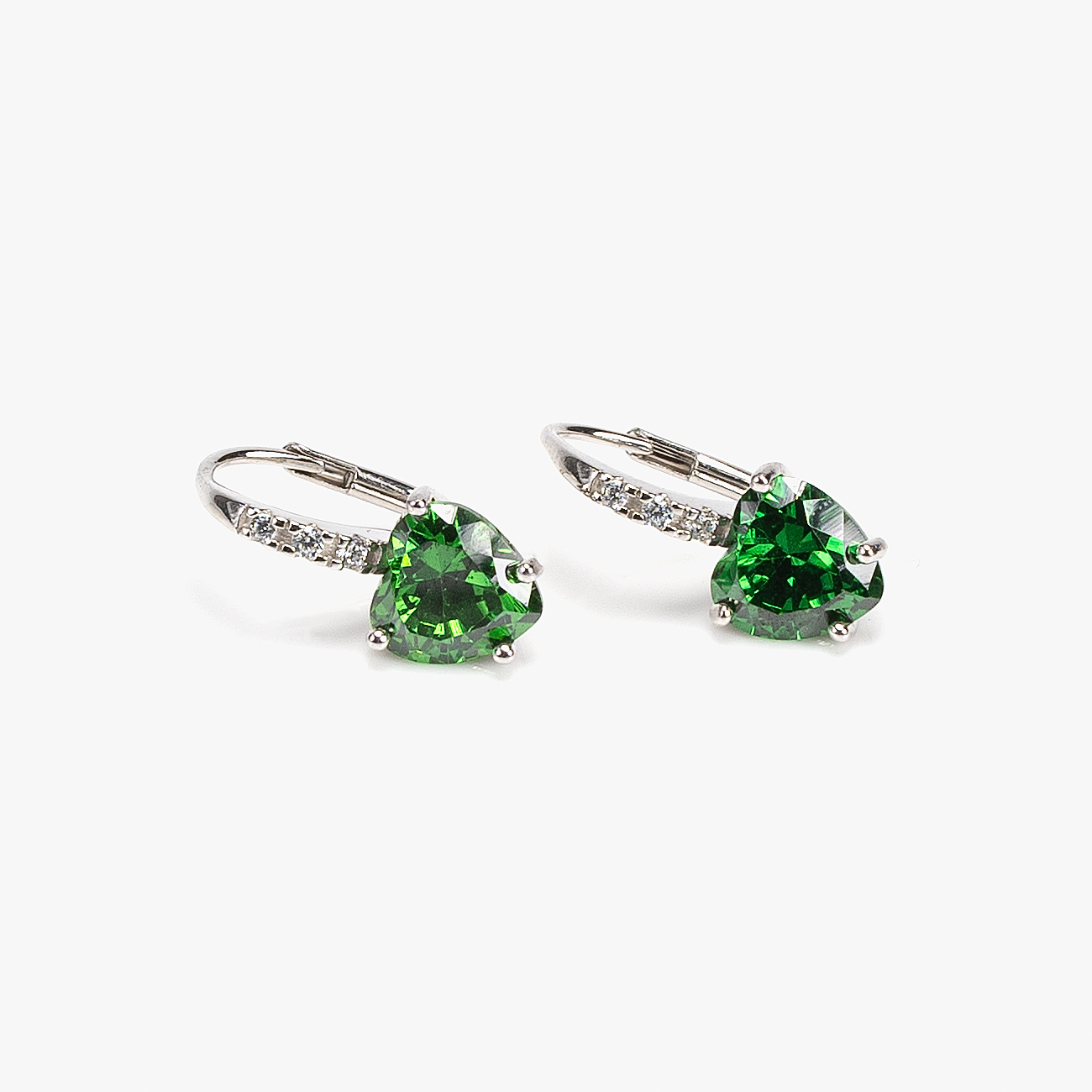 Σκουλαρίκια κρίκοι με πράσινη καρδιά σε λευκό επιπλατινωμένο ασήμι 925 και λευκά και πράσινο ζιργκόν