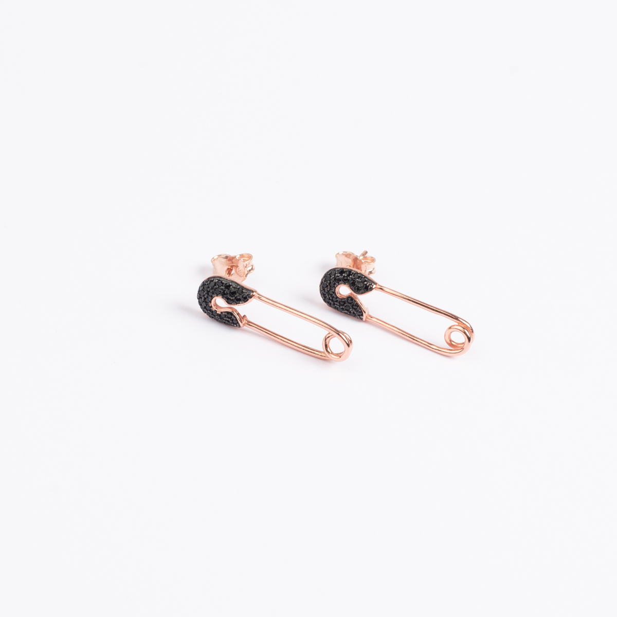Σκουλαρίκια καρφωτά στο αυτί σε σχήμα παραμάνας σε ροζ επιχρυσωμένο ασήμι 925 με μαύρα ζιργκόν