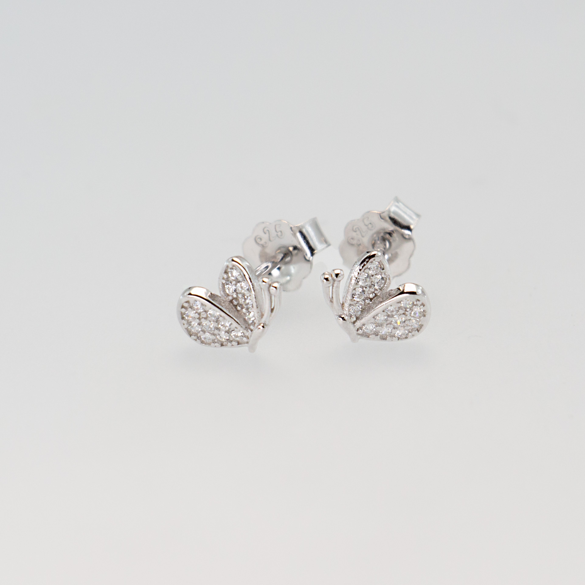 Σκουλαρίκια μικρά φτερά πεταλούδας πάνω στο αυτί σε λευκό ασήμι 925 με λευκά ζιργκόν