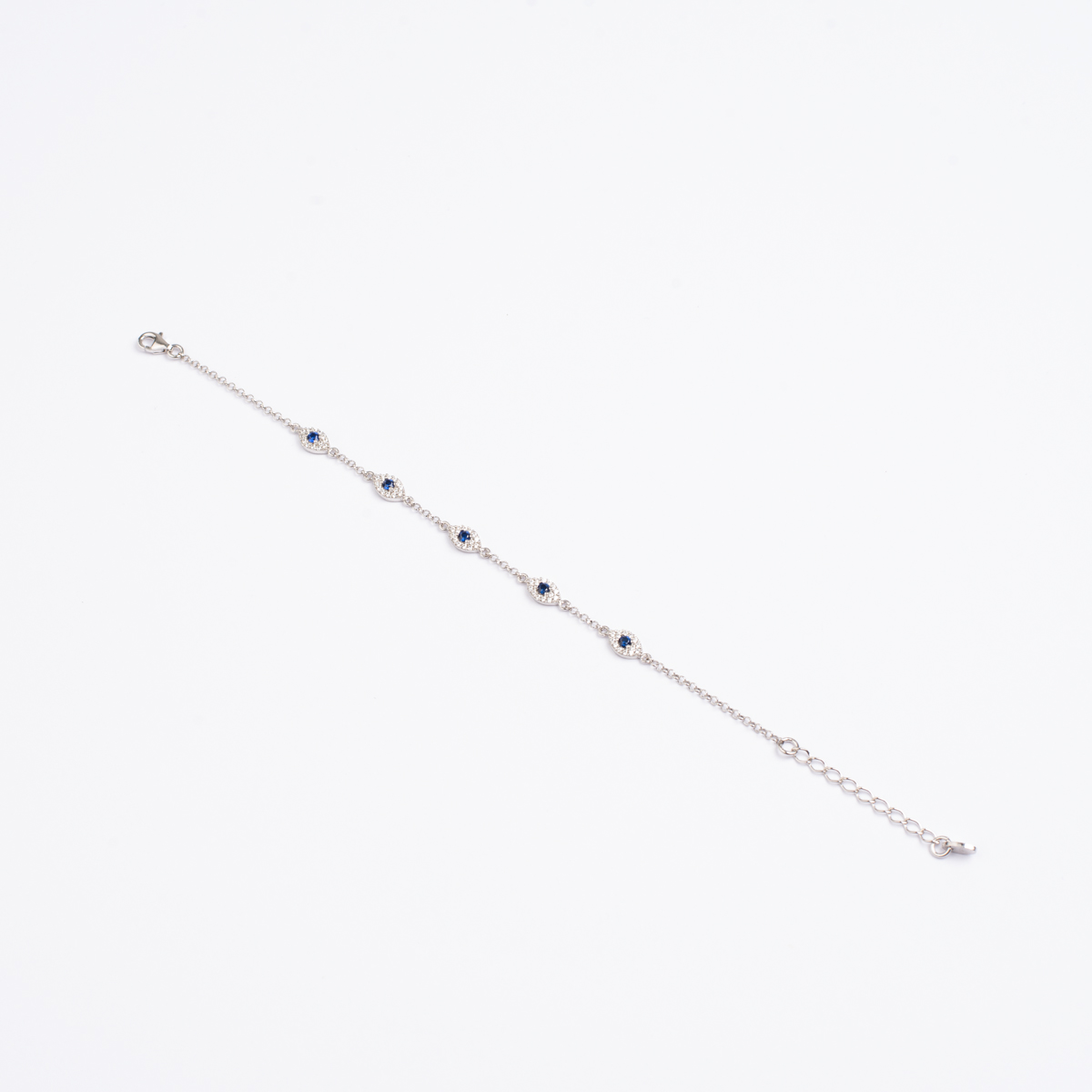 Βραχιόλι με ματάκια σε λευκό ασήμι 925 με λευκά και μπλε ζιργκόν