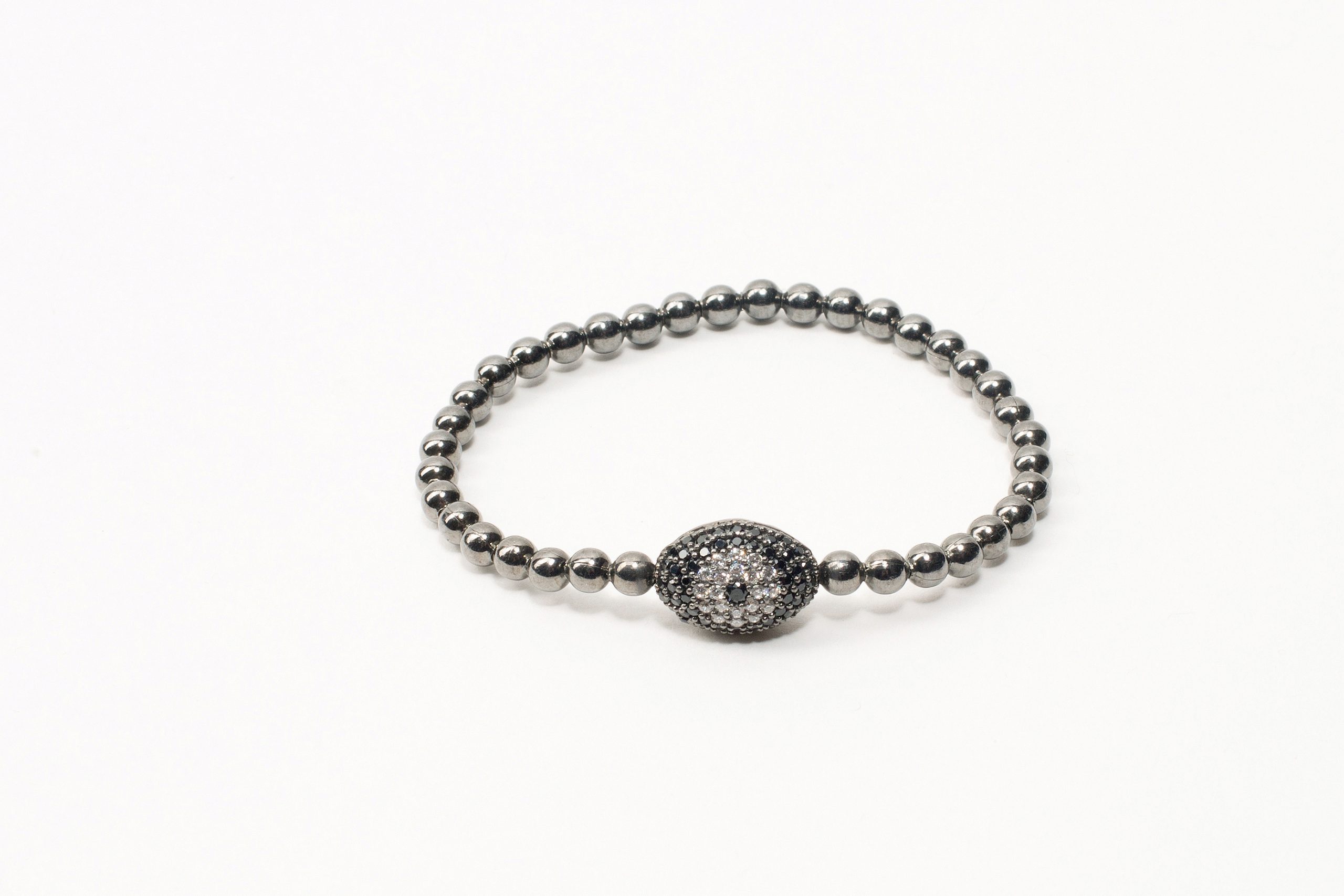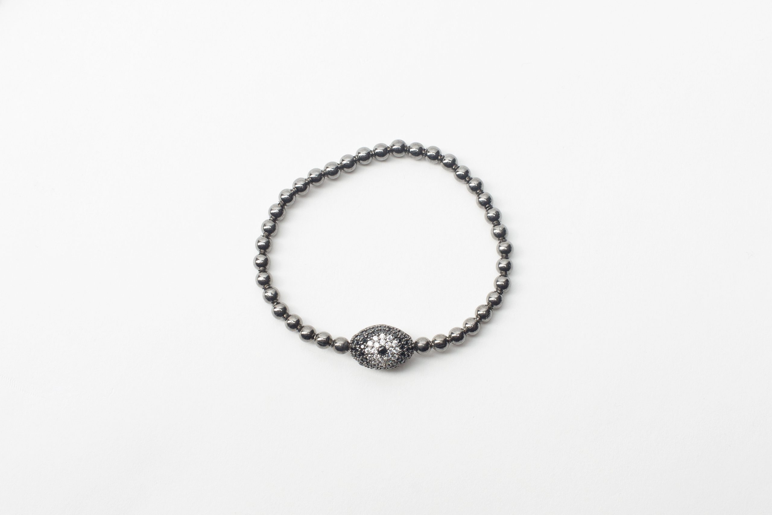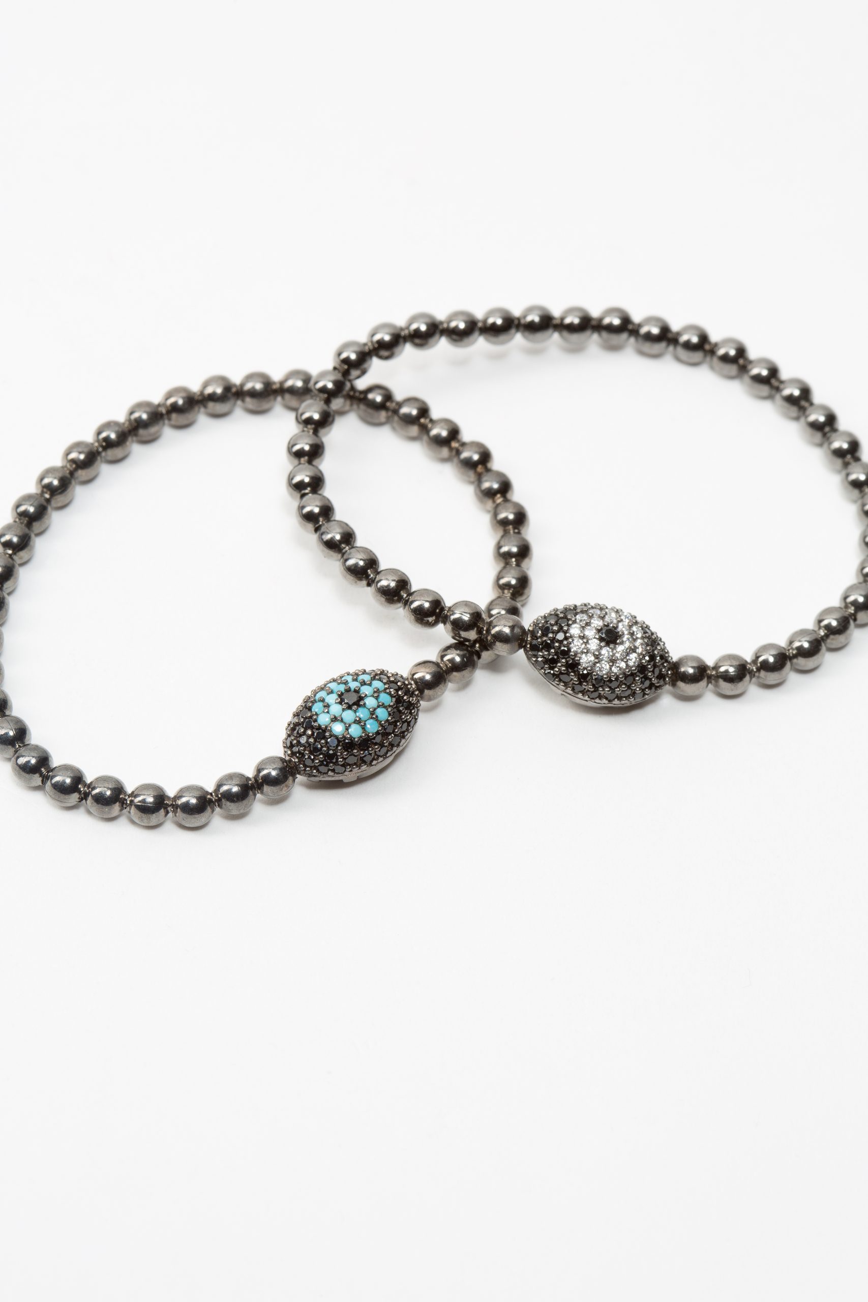 Βραχιόλι με μάτι σε μαύρο επιροδιωμένο ασήμι 925 με μαύρα, λευκά και μπλε ζιργκόν