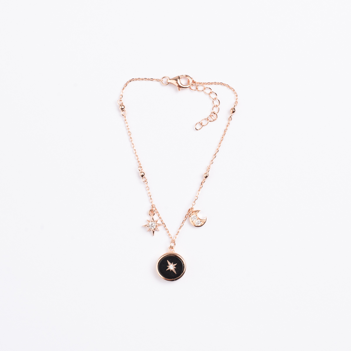 Βραχιόλι αλυσίδα σε ροζ επιχρυσωμένο ασήμι 925 με στοιχεία που κρέμονται και λευκά ζιργκόν