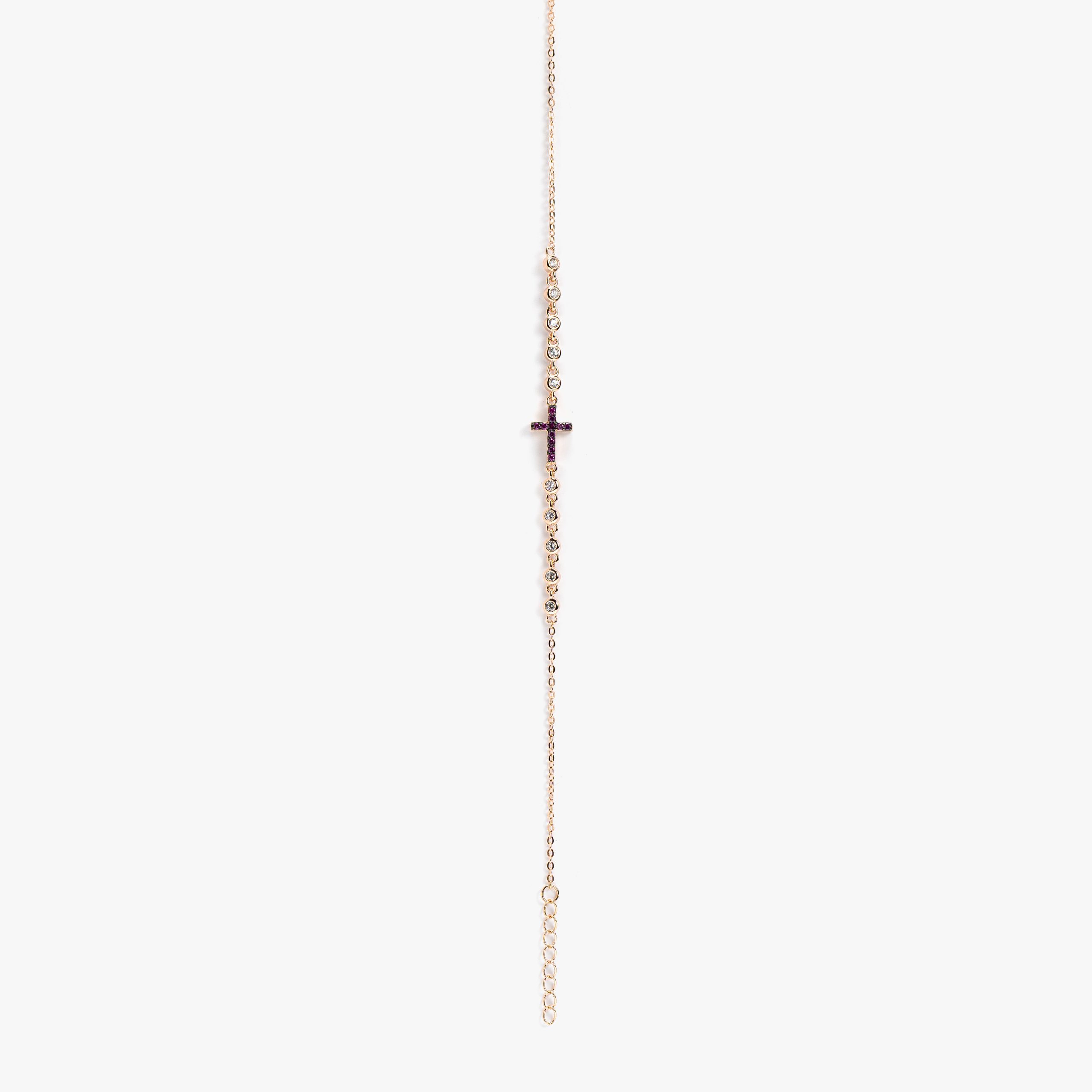 Βραχιόλι με σταυρό διπλής όψης σε αλυσίδα ροζ επιχρυσωμένο ασήμι 925 με λευκά και φουξ ζιργκόν