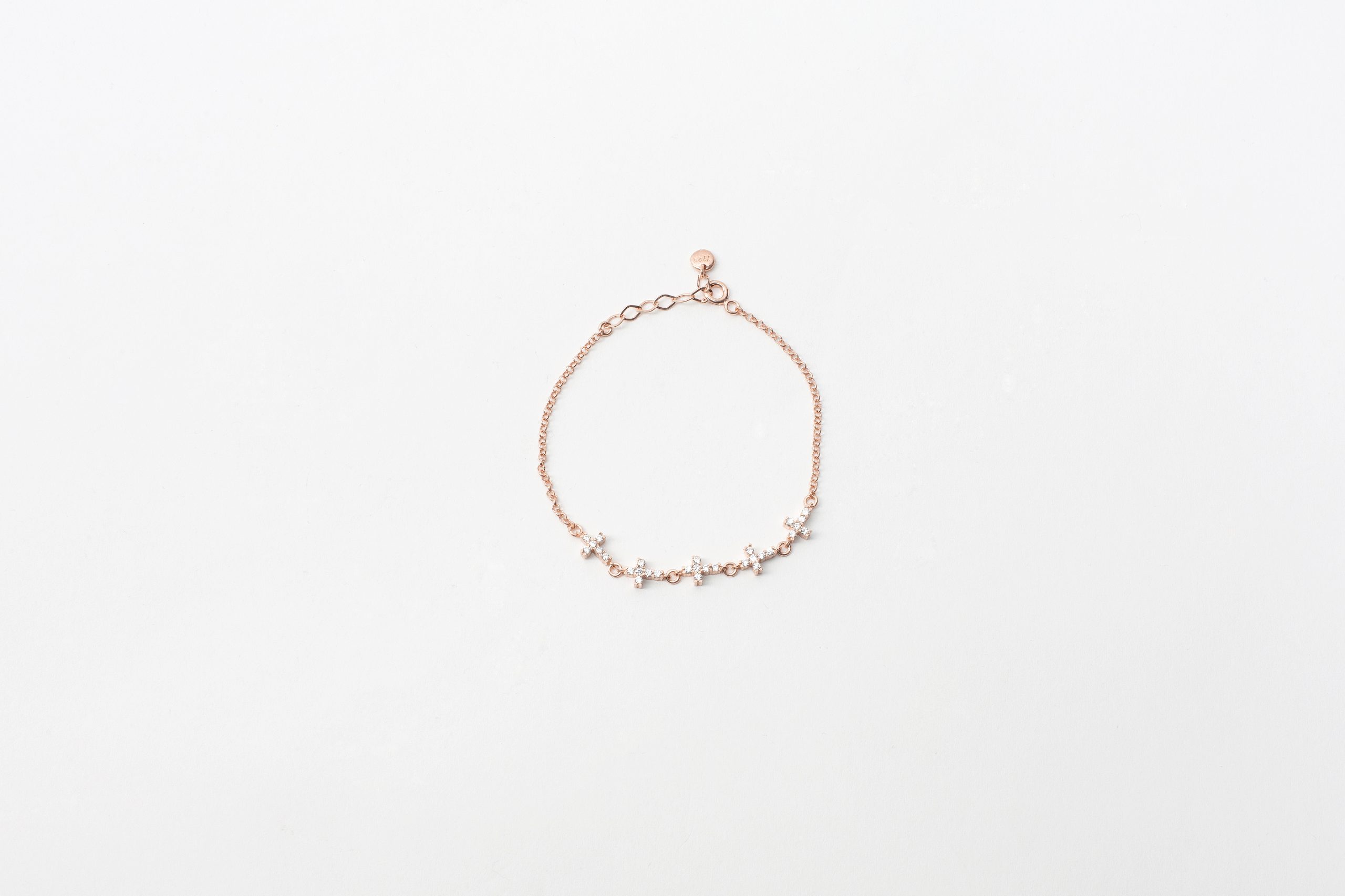 Βραχιόλι με σταυρουδάκια σε ροζ επιχρυσωμένο ασήμι 925 με λευκά ζιργκόν
